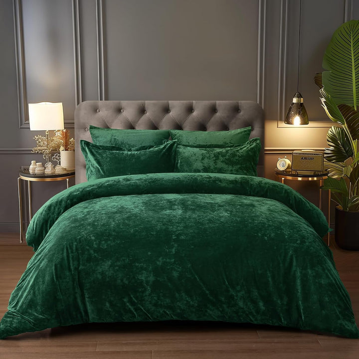 - Luruxy Home Decor: The crushed velvet fabric shimmers with rich texture and shine, creating a glamorous, high-end look. Matching shams complete the set, adding a touch of romantic, vintage elegance to your space.